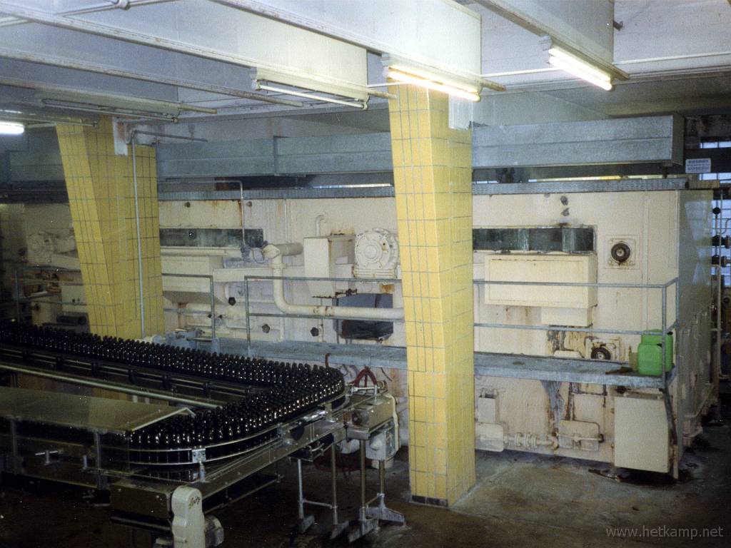 Die gereinigten Flaschen laufen auf einem Förderband zum Flaschenfüller
