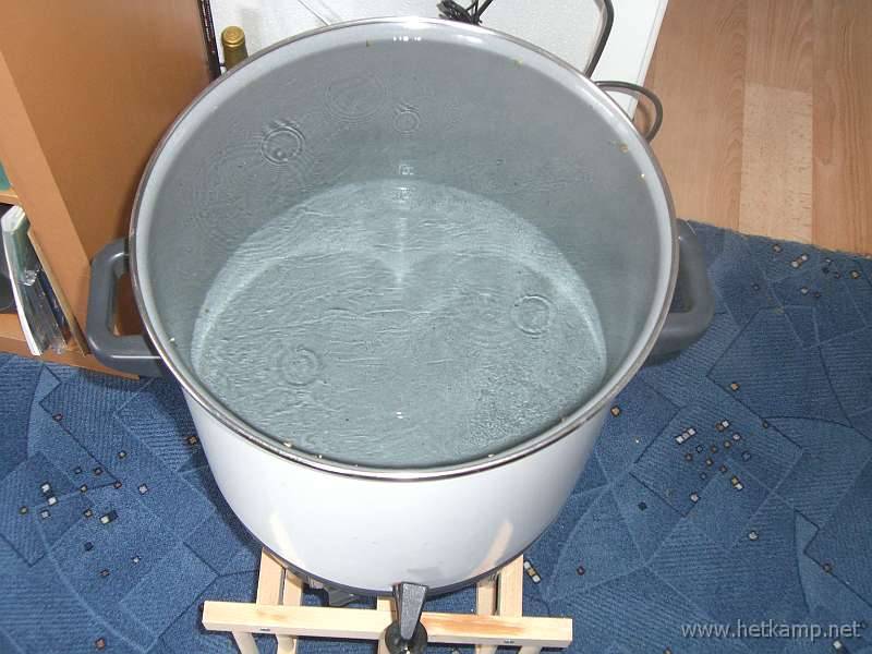 Das Wasser für die Nachgüsse steht im Einmachkochtopf bereit.